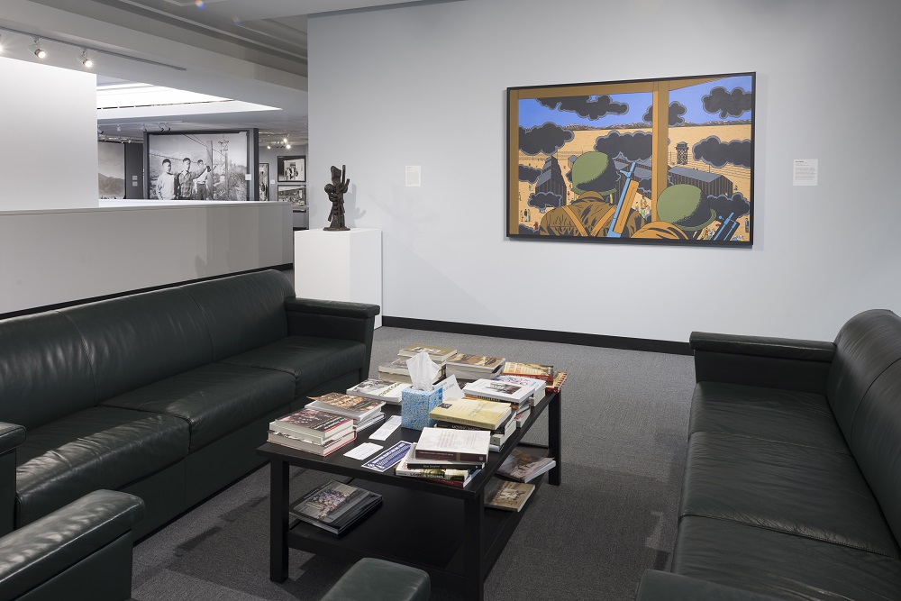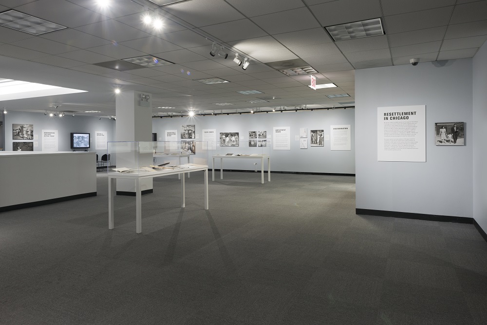 The JASC and a number of collectors from the Chicago area have generously lent art, objects, documents and other historical materials that provide glimpses into the personal experiences of those who were incarcerated. Highlights include ID cards and tags, anti-Japanese propaganda, suitcases, diaries, handmade furniture, wood carvings and other works of art, high school yearbooks and newsletters produced by camp inmates, military accoutrements, indefinite leave clearances, materials related to resettlement in Chicago and eventual redress and reparation. Specially compiled video testimonies by former inmates, their family members and community leaders are installed throughout the exhibition. And the new documentary film And Then They Came for Us by Abby Ginzberg and Ken Schneider, screened daily, makes explicit connections between the Japanese American incarceration story and current concerns with regard to the treatment of Muslims and Muslim Americans.